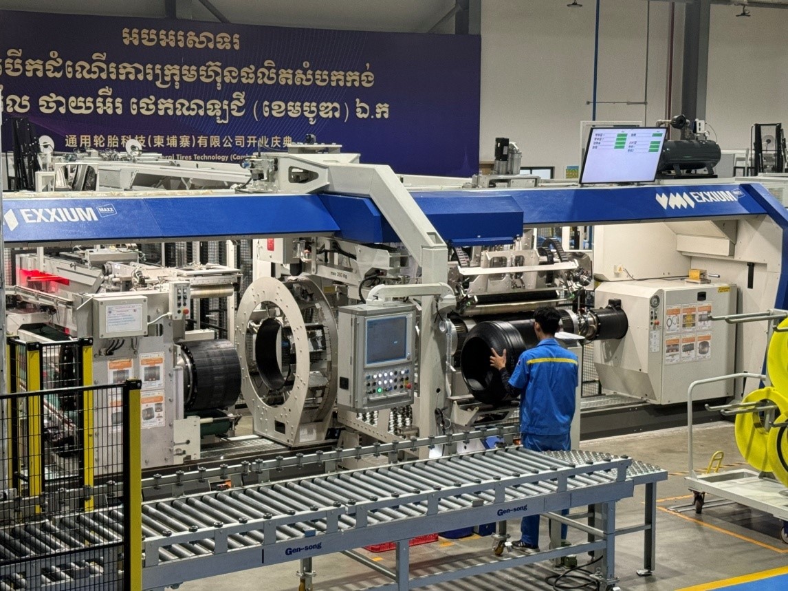 走進通用輪胎科技(柬埔寨)有限公司,目之所及都是智能化的生產(chǎn)設(shè)備,工廠內(nèi)建有13個立體智能倉庫,91個機器人。令人驚嘆的是,從半部件到一條20寸的輪胎成型,僅需33秒的時間就完成了。該工廠自2023年5月正式開業(yè)以來,以打造智能化、自動化、信息化的現(xiàn)代化工廠為目標(biāo),推進智能制造和精益制造,僅一年時間,一期項目就實現(xiàn)了全面達產(chǎn)。如今,正在加快推進二期項目建設(shè),一期、二期全部達產(chǎn)后,將具備年產(chǎn)850萬條半鋼子午胎和165萬條全鋼子午胎的生產(chǎn)能力。