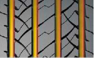 增加胎面的咬合邊,提高剎車和濕地安全性能。切割花紋防止花紋塊在剎車時發生卷邊效應,增大接地面積。