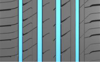 四條寬排水縱向溝槽,濕地條件下及時排除水分,防止水滑;